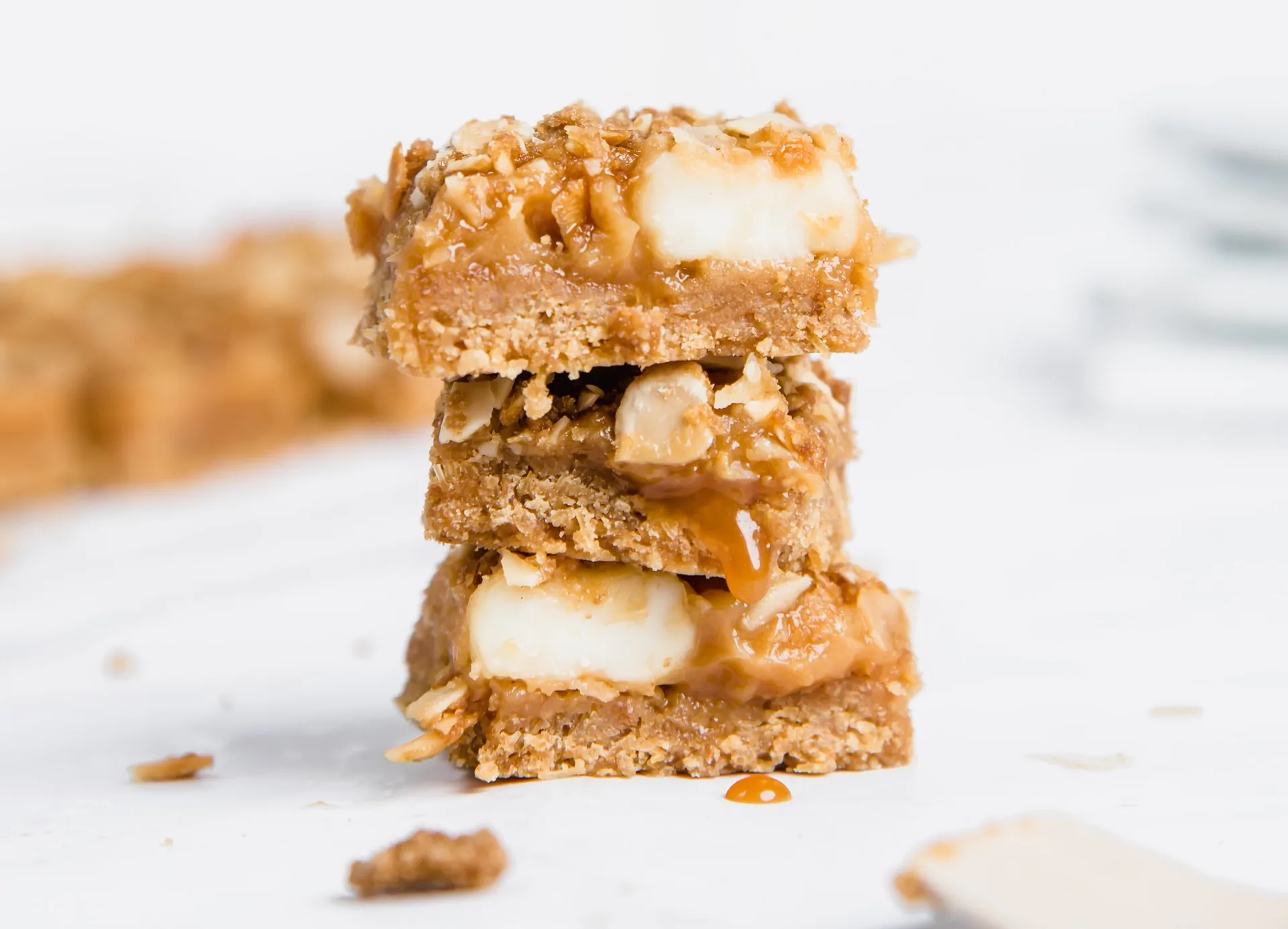 Le barrette al caramello e noci sono uno snack sfizioso e invitante, ottimo da gustare come spuntino tra un pasto e l’altro, anche fuori casa. Queste deliziose barrette sono composte da tre strati: una friabile base di pasta frolla, uno strato morbissimo di caramello salato e una croccante copertura di noci tritate. Ottime da proporre anche ai bambini in alternativa alle merendine o servire come dessert di fine pasto.