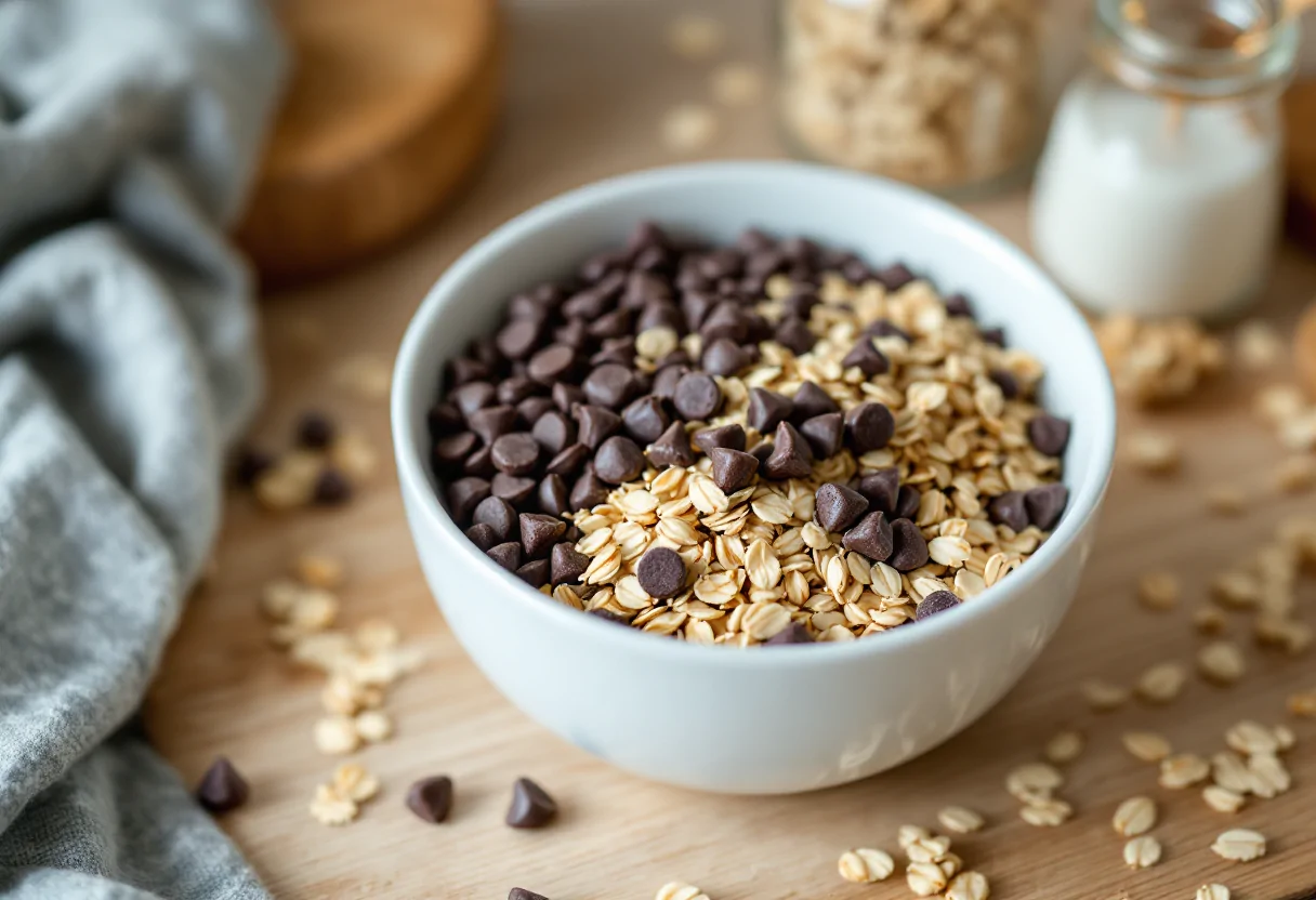 Iniziare a preparare i biscotti è molto semplice. Prima di tutto, preriscalda il forno a 180°C. In una ciotola, mescola la farina d’avena con lo zucchero e il sale. Aggiungi le uova e mescola fino a ottenere un impasto omogeneo. Infine, incorpora le gocce di cioccolato, che daranno un tocco di dolcezza e golosità ai tuoi biscotti. Una volta pronto l’impasto, forma delle palline e disponile su una teglia rivestita di carta da forno, schiacciandole leggermente per dare la forma desiderata.