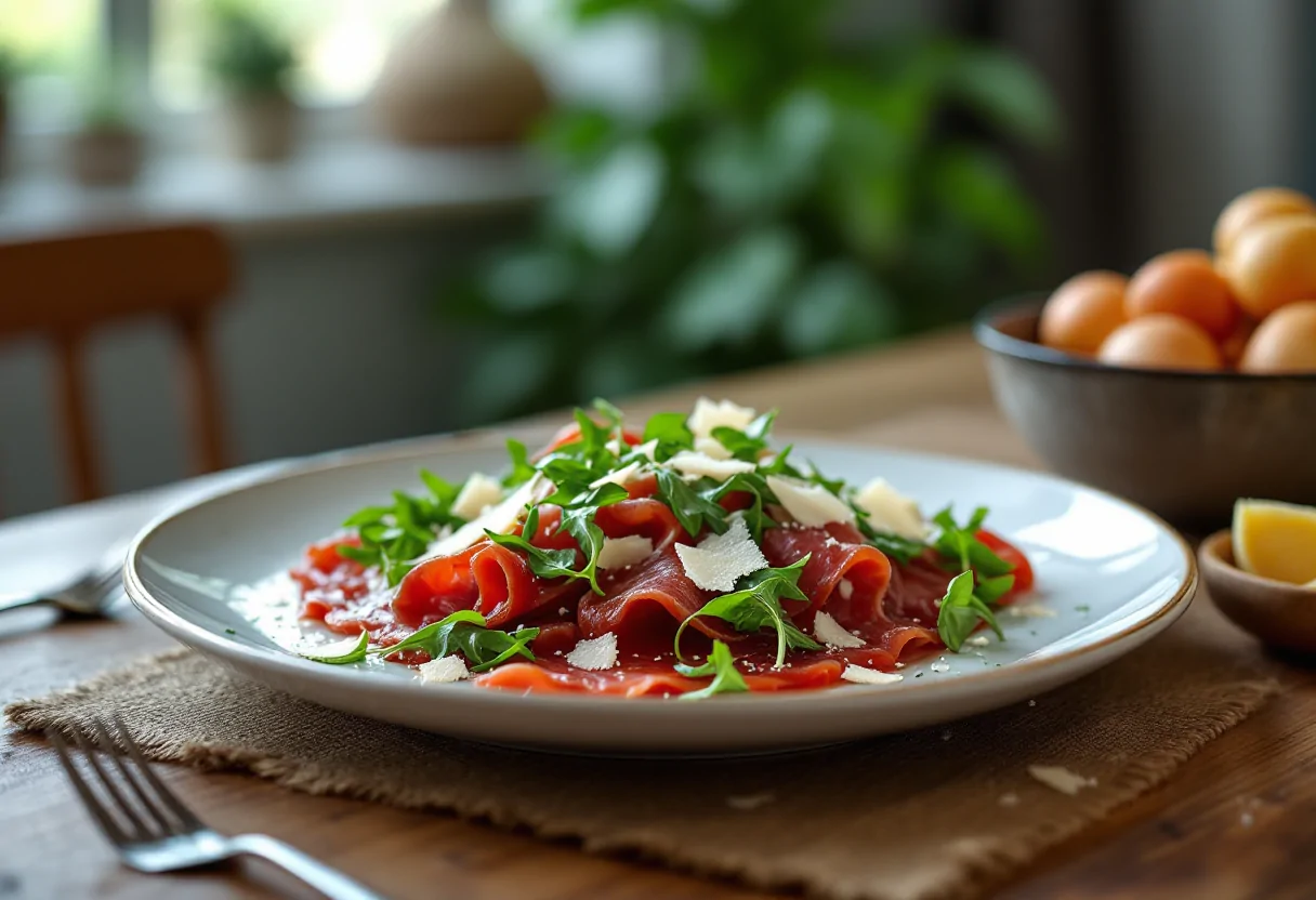 Scopri il gusto autentico della bresaola con rucola e grana.