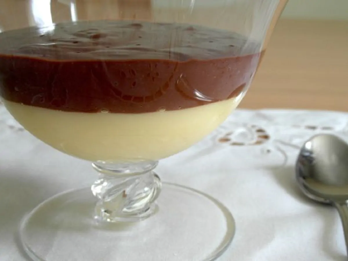 - Versa il composto nelle coppette sopra al budino bianco, creando un secondo strato di budino scuro.
