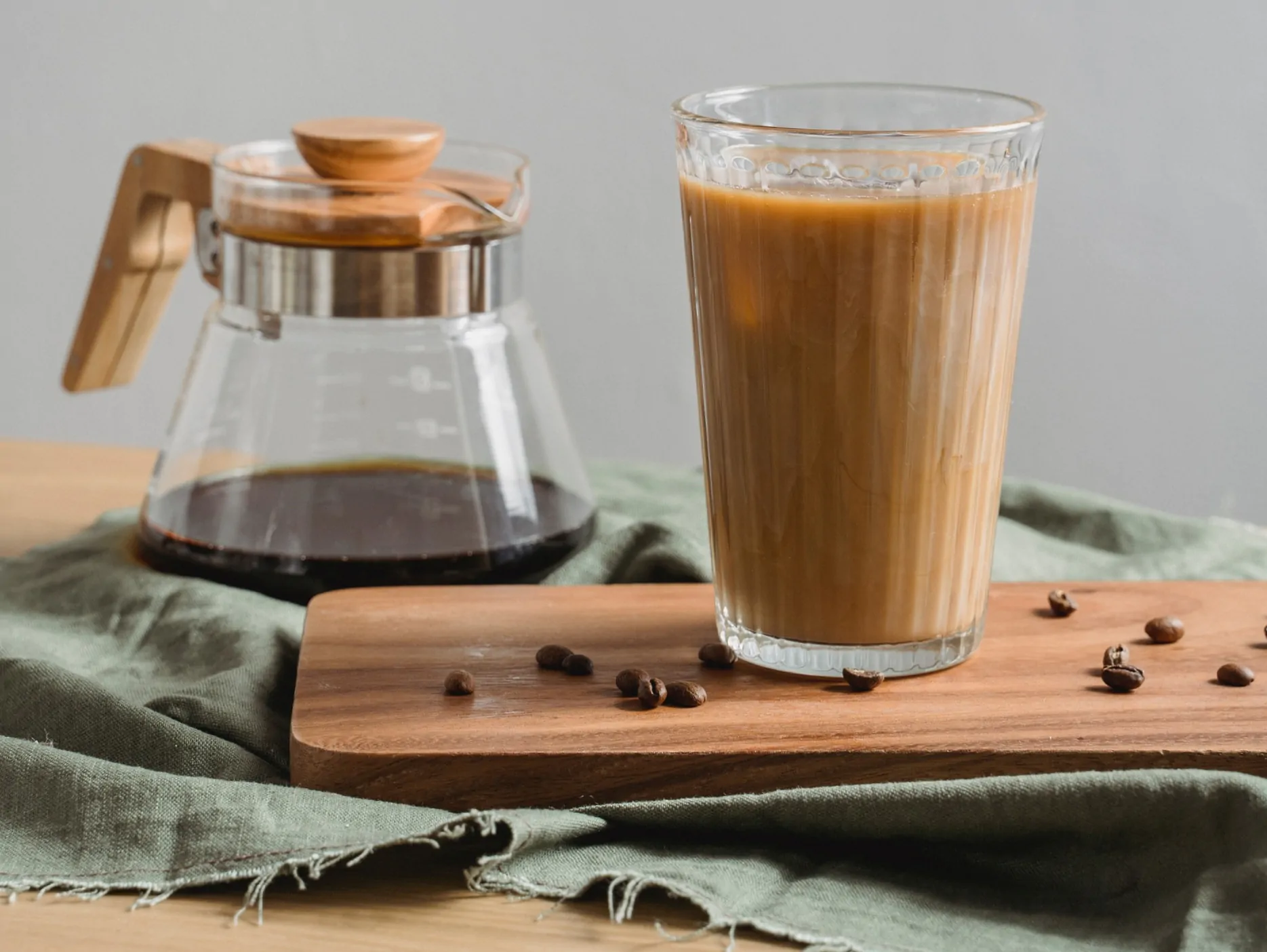 - Preparate il caffè e lasciatelo raffreddare, dopodiché miscelatelo con il latte freddo (potete utilizzare anche una bevanda vegetale) e lo zucchero.