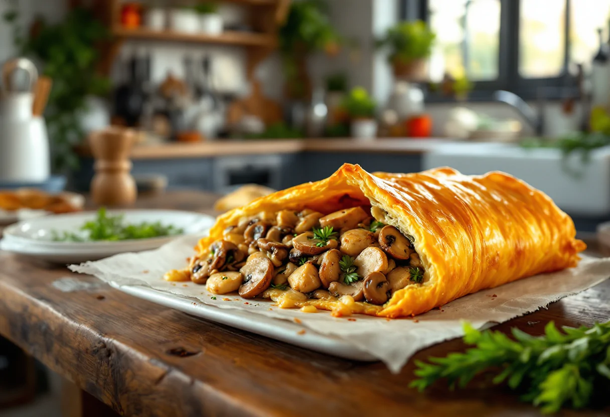 Scopri la deliziosa casseruola di pollo e funghi in crosta di pasta sfoglia, un piatto irresistibile!