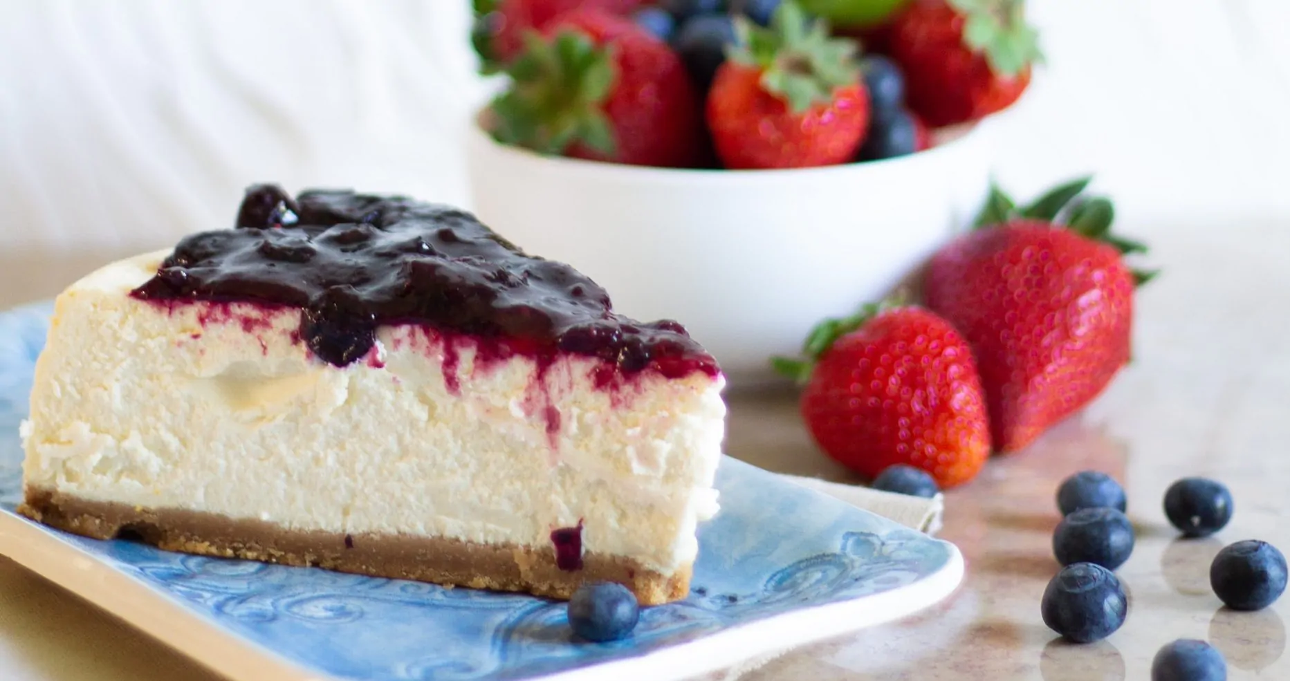 Prepara questa spettacolare cheesecake per l’estate. Ricoprite con fragole o un mix di frutti di bosco freschi, più una spruzzata di cioccolato per una maggiore indulgenza.