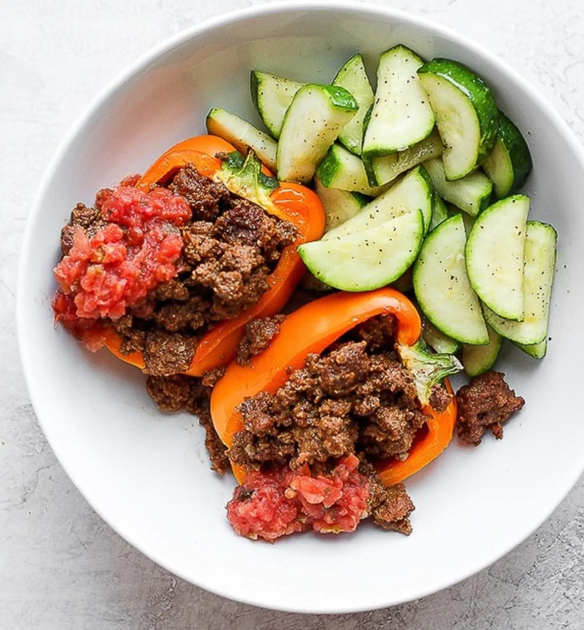 - Togliere i peperoni dal forno e riempire ciascuno con il composto di taco. Coprire con altro formaggio.