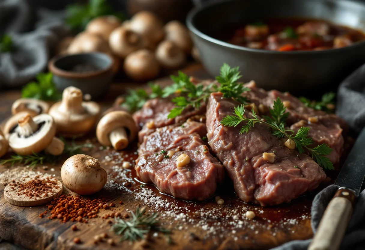 Per preparare un delizioso spezzatino di manzo con funghi champignon, avrai bisogno di ingredienti freschi e di qualità. Ecco cosa ti serve: