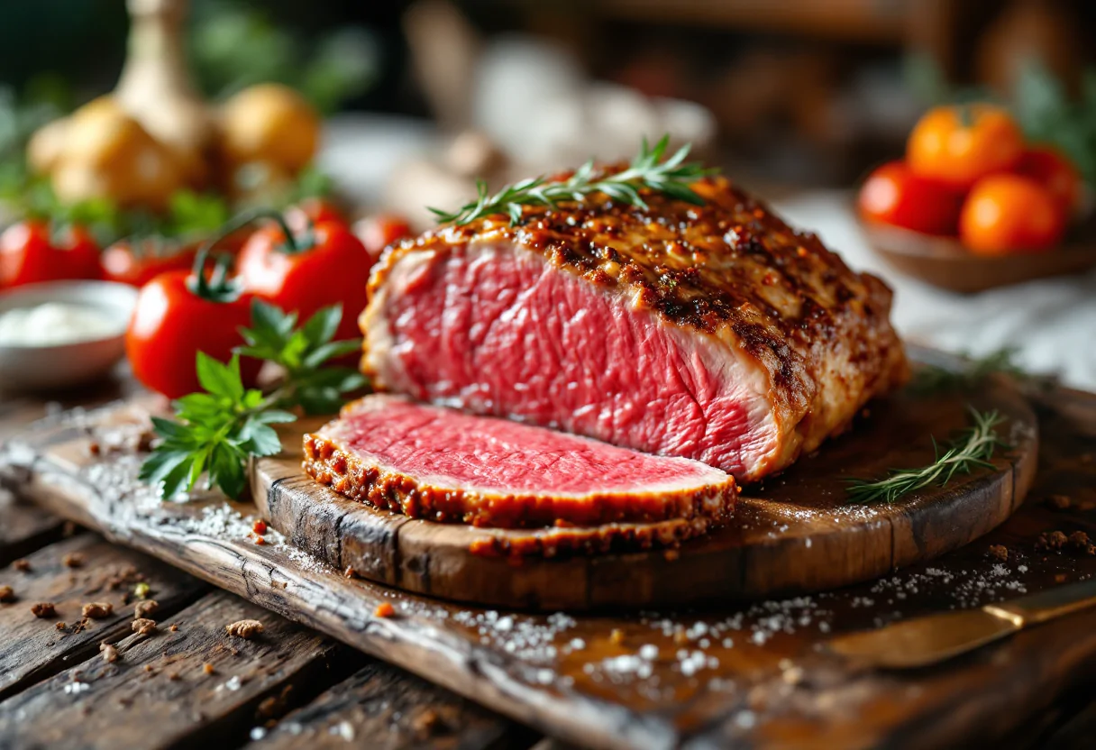 Per ottenere un roastbeef di vitello succoso e saporito, è fondamentale scegliere un taglio di carne di alta qualità, preferibilmente proveniente dalla coscia o dal controfiletto. Iniziate massaggiando la carne con olio d’oliva, sale, pepe e, se gradito, aglio tritato e rosmarino. Per un sapore più intenso, potete spennellare la carne con mostarda o senape.