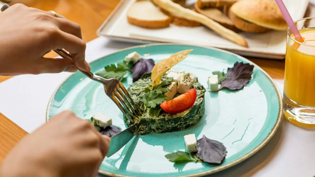 Una porzione di verdure: un’insalata di pomodori o cetrioli, melanzane o zucchine grigliate, peperoni e tutta la verdura di stagione.