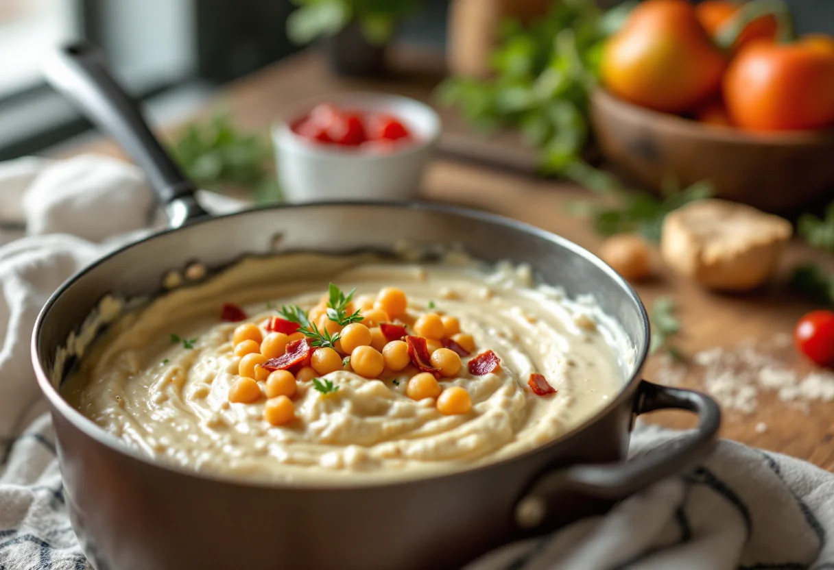 Scopri la deliziosa crema di cavolfiore con ceci e speck, ideale per l'inverno.