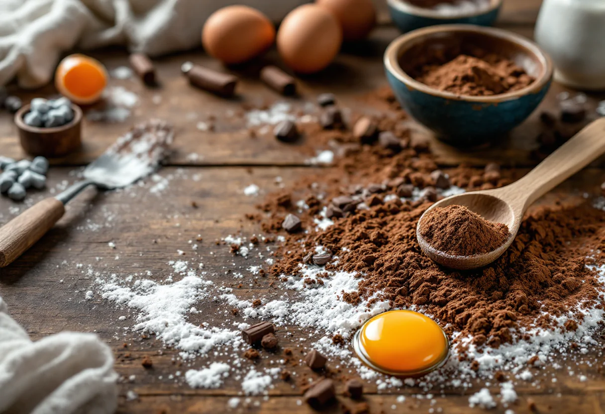 Per realizzare le crêpes al cacao, è necessario unire cacao amaro in polvere a burro, farina e zucchero.