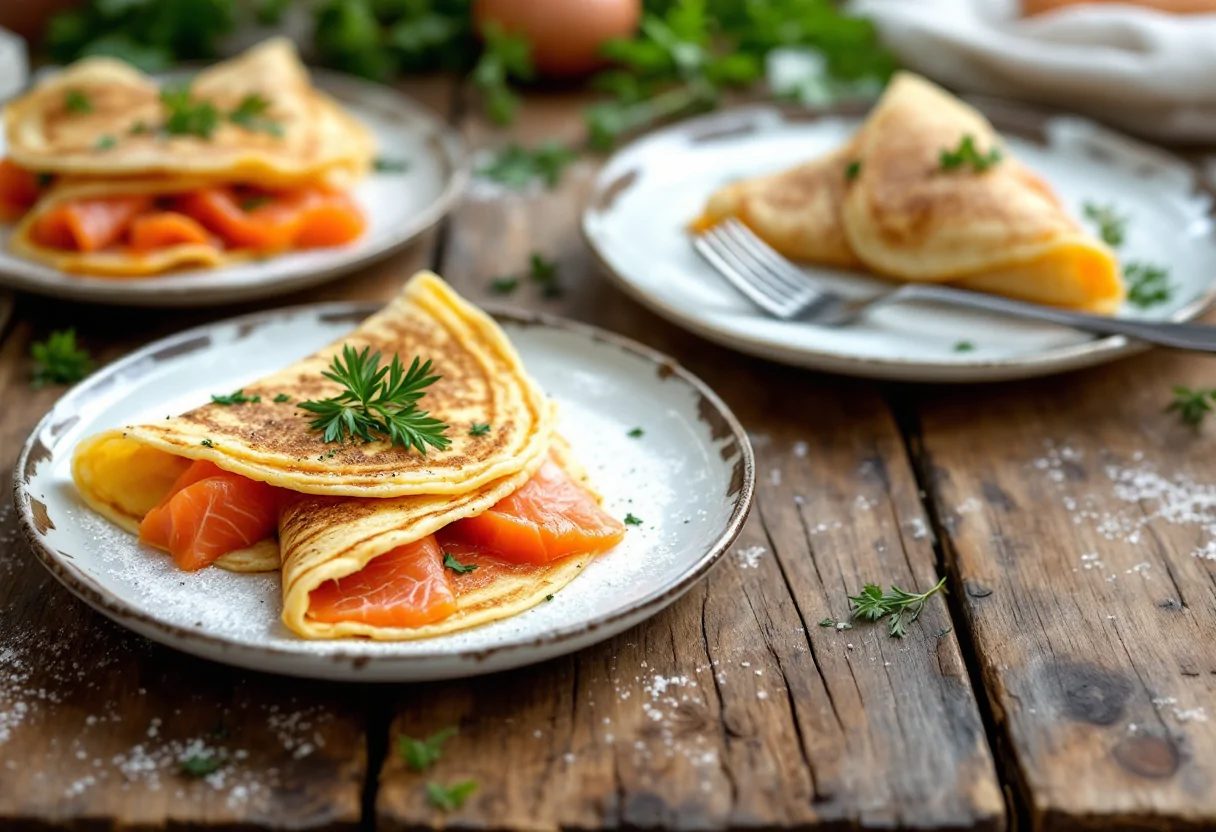 Scopri come preparare deliziose crêpes al salmone e spinaci.
