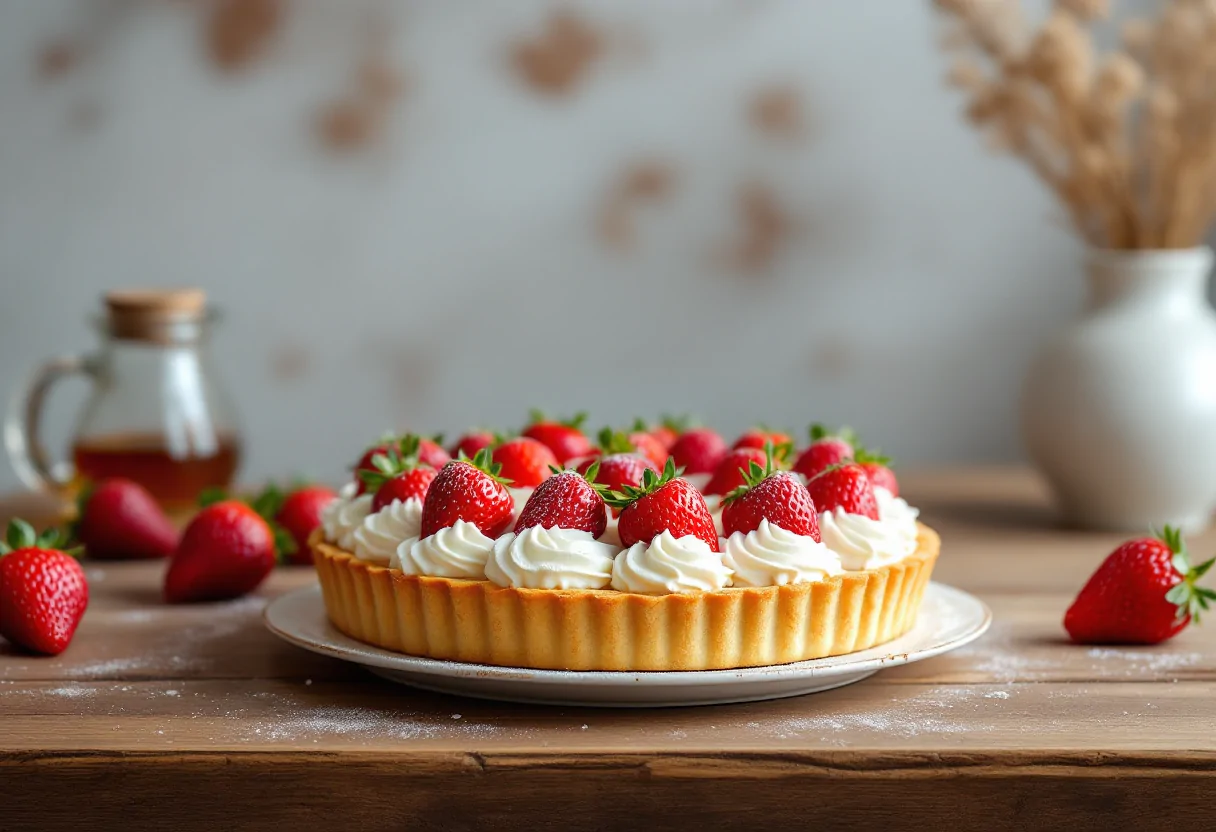 Deliziosa crostata di fragole con crema al cioccolato bianco, perfetta per la primavera.