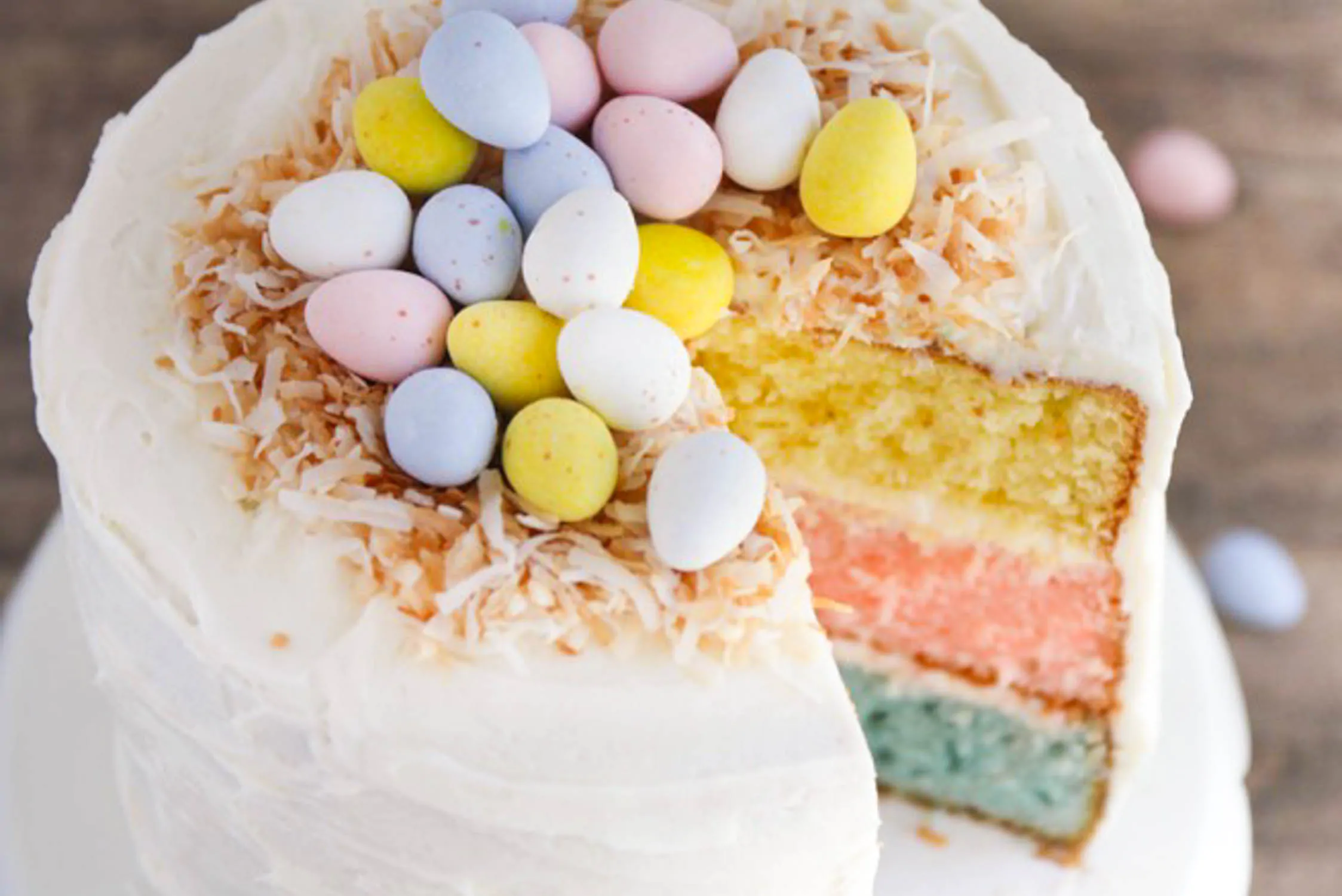 In questa ricetta facile da preparare e molto bella da vedere, le uova di pasqua sono state riempite con frutta, caramelle colorate ed ovetti. Inoltre il bordo è decorato con tantissimi zuccherini dai mille colori. Qui la ricetta completa.