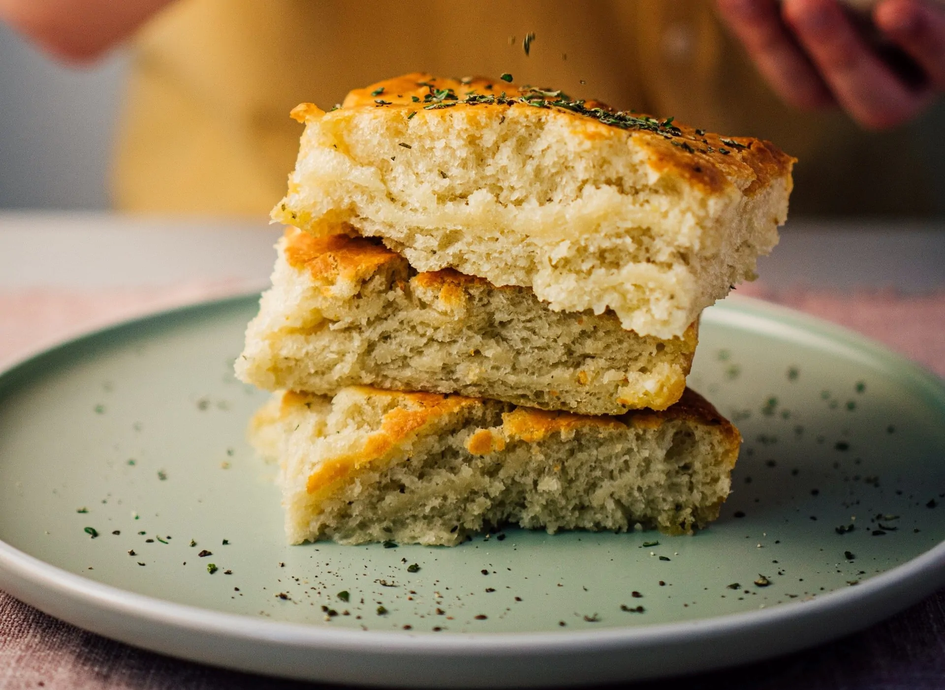 La focaccia di patate è un soffice lievitato aromatizzato al rosmarino, ideale da gustare in ogni occasione e momento della giornata: come spuntino tra un pasto e l’altro, a pranzo o come aperitivo, abbinato a un tagliere di salumi, formaggi e salse fatte in casa.