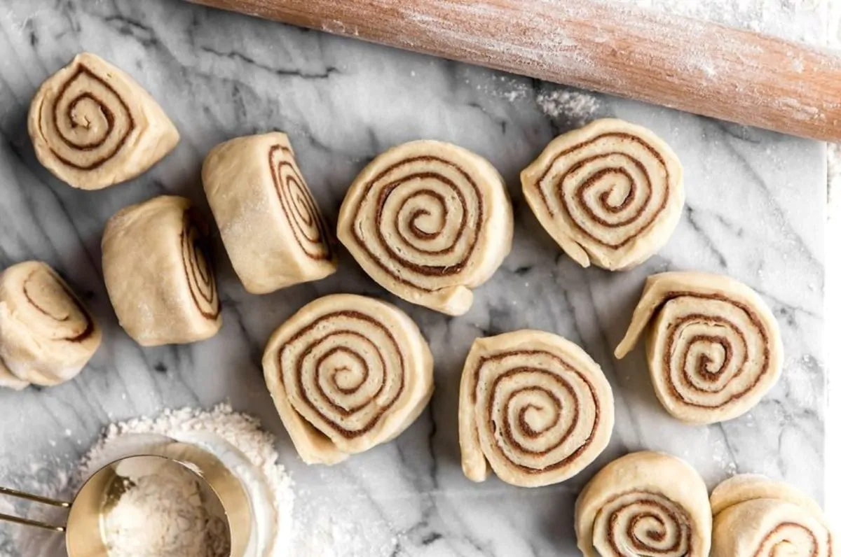 3. Arrotolate ben stretto e tagliate le girelle spesse 1 cm circa. Sistemate le girelle su una teglia da forno ricoperta con carta da forno e lasciatele lievitare fino al loro raddoppio.