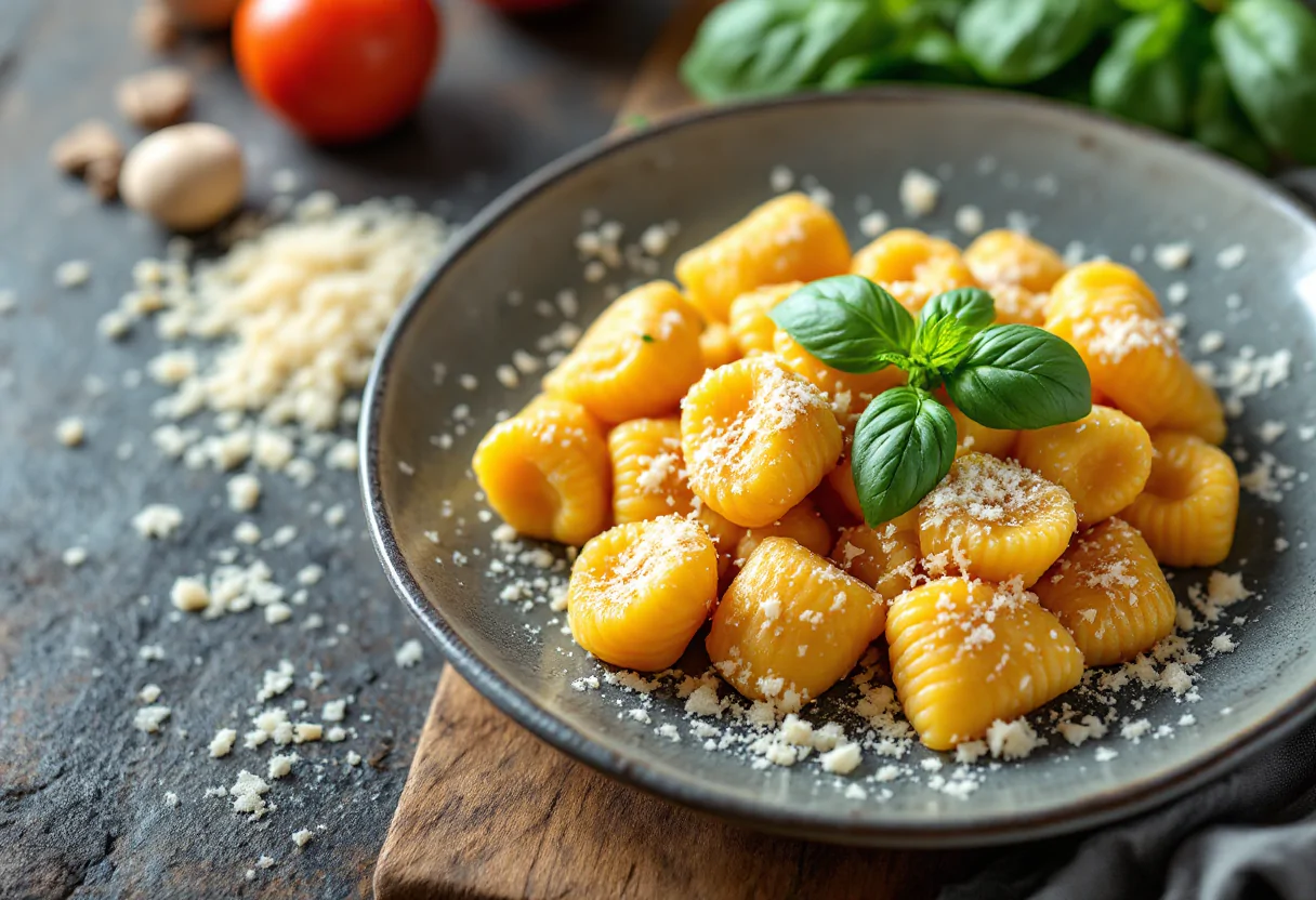 Una volta assemblati gli strati, inforniamo a 200 °C per circa 10 minuti. A questo punto, apriamo il cestello della friggitrice ad aria e spolverizziamo generosamente con parmigiano grattugiato, completando la cottura per altri 5 minuti. Il risultato finale sarà un piatto dorato e filante, perfetto da servire caldo e decorato con foglioline di basilico fresco. Gli gnocchi alla romana alla maniera sorrentina sono ideali per una cena in famiglia o per sorprendere gli ospiti con un piatto ricco di tradizione e innovazione.