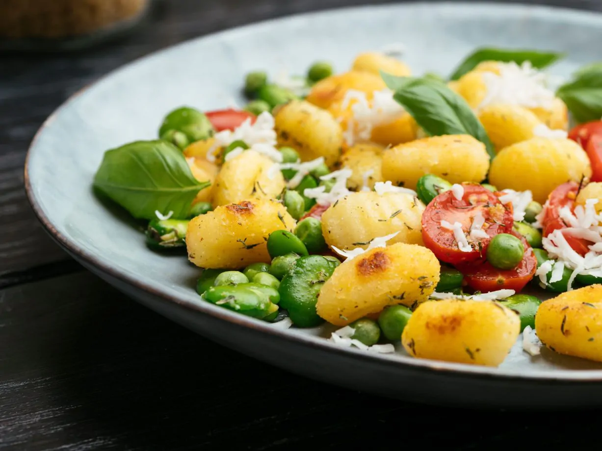Avete preparato gli gnocchi ripieni di prosciutto e formaggio ma non sapete come condirli? Oggi ve li proponiamo in una versione primaverile ricca di colore e di gusto. Gli ingredienti che occorrono per preparare questa ricetta sono molto semplici: piselli, fagioli edamame, pomodorini, basilico fresco e parmigiano in scaglie. Un primo piatto nutriente e saporito, perfetto da servire anche in un’occasione speciale. Proseguite la lettura e scoprite come cucinare in pochi passi i deliziosi gnocchi primavera ripieni!