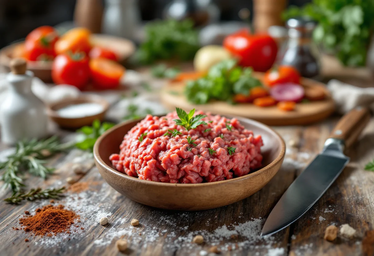 Iniziamo la preparazione degli hamburger di carne aromatici. Se possiedi un Bimby, il processo diventa ancora più semplice e veloce.