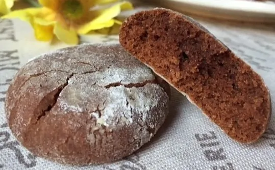 Versare un po’ di zucchero a velo in un piatto e creare delle palline con l’impasto di circa 30 gr ciascuna, rotolarle nello zucchero a velo, schiacciarle leggermente con le dita e sistemarle su una teglia rivestita con carta da forno. Scaldare il forno a 180° e cuocere i biscotti per 8-10 minuti, finché non inizieranno a formarsi delle crepe sulla superficie. Sfornare i biscotti e lasciarli raffreddare. Servire.
