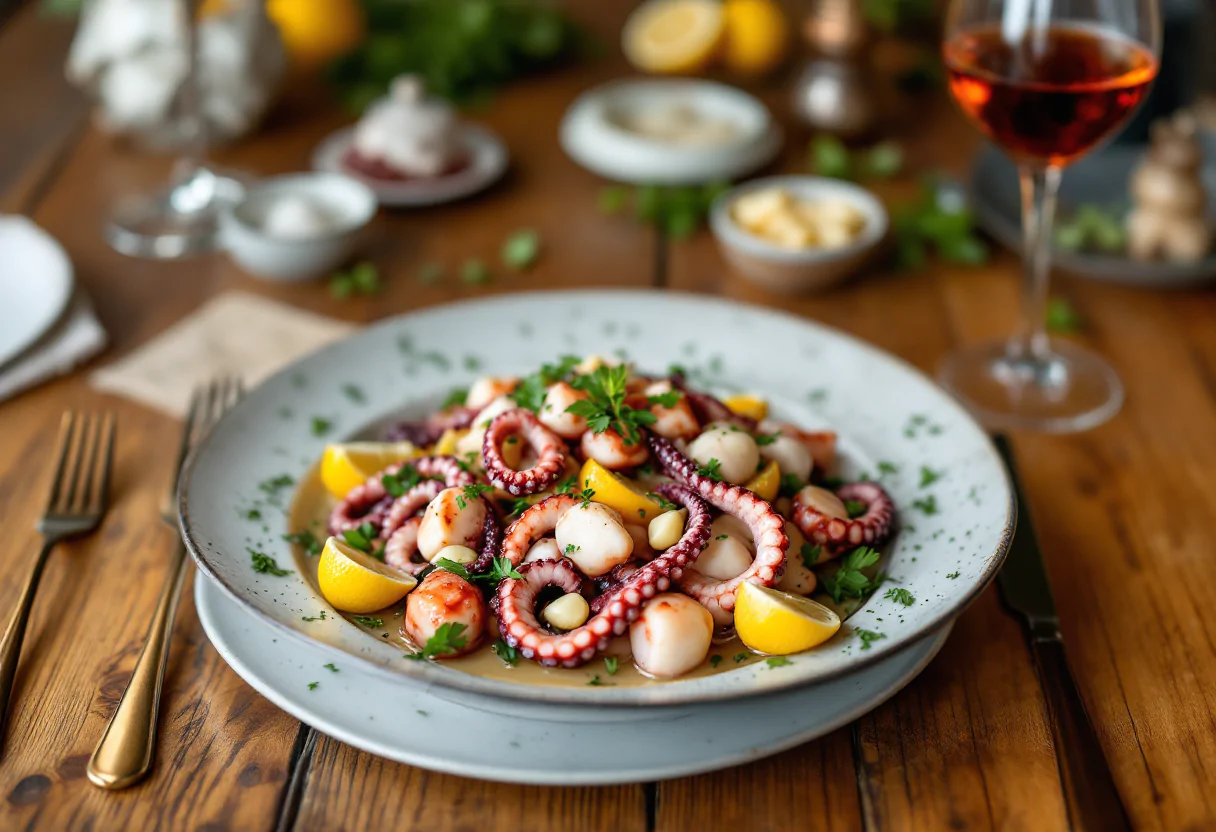 Guarnisci con prezzemolo fresco tritato per un tocco di colore e sapore. Questo piatto non solo è delizioso, ma è anche un ottimo modo per sorprendere i tuoi ospiti con una preparazione semplice ma raffinata. Ricorda, il segreto per un polpo perfetto è nella cottura e nella scelta degli ingredienti freschi!