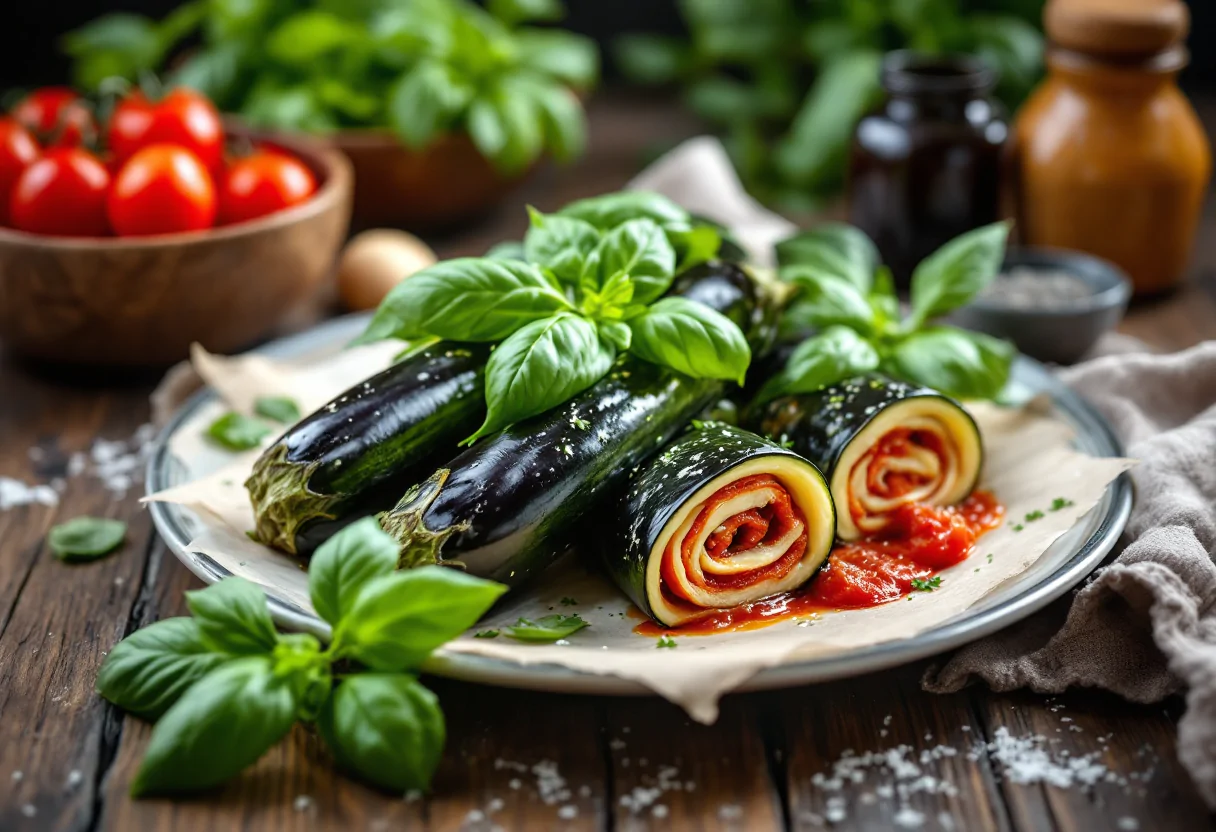Le melanzane devono essere tagliate a fette sottili e cotte in forno per ridurre il loro retrogusto amaro. La ricotta fresca, abbinata a grana grattugiato, offre una farcitura cremosa e saporita. I pomodorini, scottati con aglio e basilico, aggiungono freschezza e un tocco di acidità al piatto. Questa preparazione è non solo semplice, ma anche veloce, rendendola accessibile anche ai cuochi meno esperti.