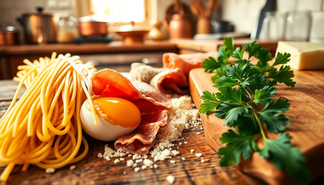 La ricetta tradizionale della carbonara prevede pochi ingredienti: spaghetti, guanciale, uova, pecorino romano e pepe nero.