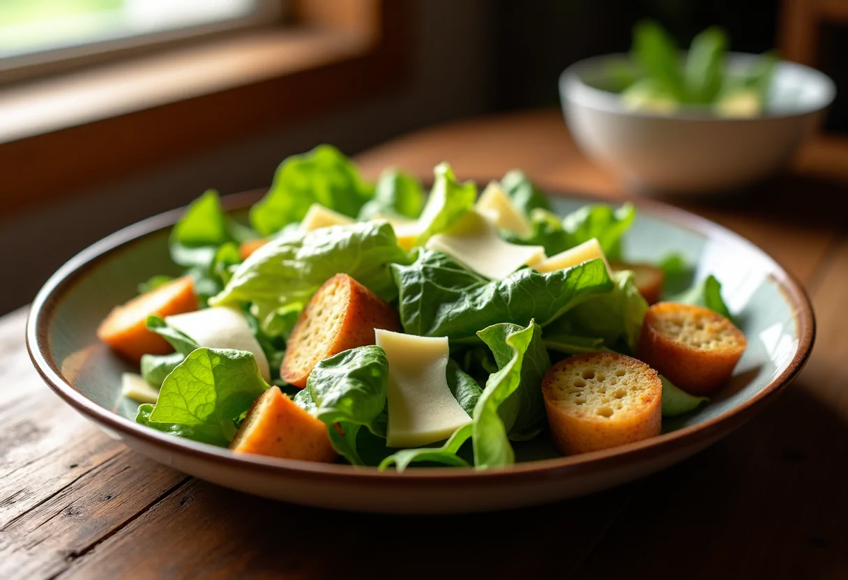 La ricetta originale dell’insalata Caesar è semplice ma ricca di sapore. Per prepararla, avrai bisogno di lattuga romana, Parmigiano reggiano, crostini di pane, olio d’oliva, succo di limone, uova e salsa Worcestershire. In molte varianti moderne, viene aggiunto anche il pollo, che rende il piatto ancora più sostanzioso.