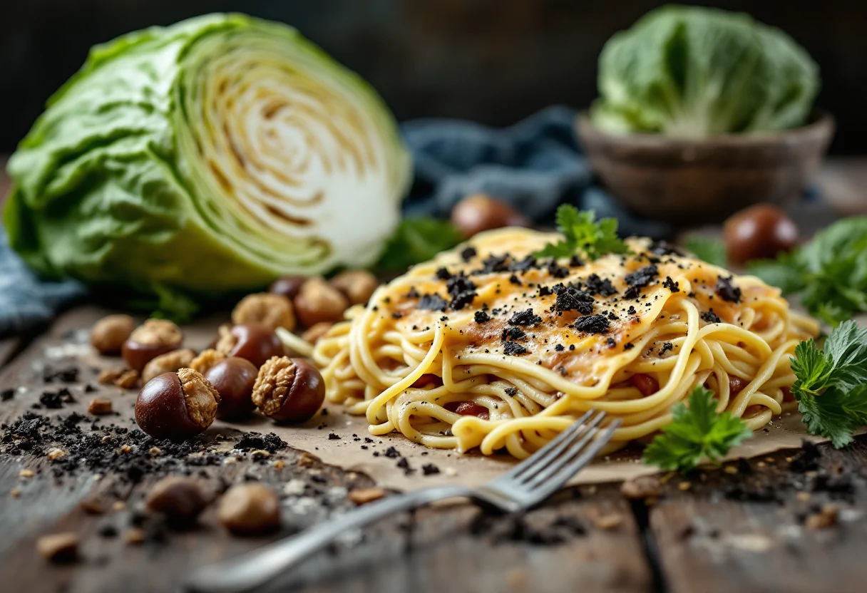 Scopri le deliziose lasagne con verza e tartufo nero, un piatto autunnale da gustare.
