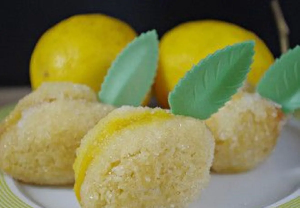 - Farciamo con della crema pasticcera al limone un guscio, uniamo l’altra parte del guscio vuoto accoppiandoli. Poi li passiamo velocemente nella bagna al limoncello o al limone preparata precedentemente, li rotoliamo nello zucchero in modo da formare l’effetto buccia e li disponiamo su un vassoio. Stacchiamo delle foglioline di menta e le inseriamo tra un guscio e l’altro proprio come accade nei reali limoni.