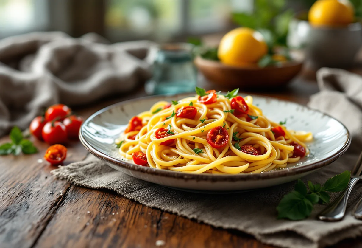 Le linguine al limone con pomodori secchi sono un’ottima scelta per chi cerca un pasto leggero e gustoso, perfetto per l’estate.
