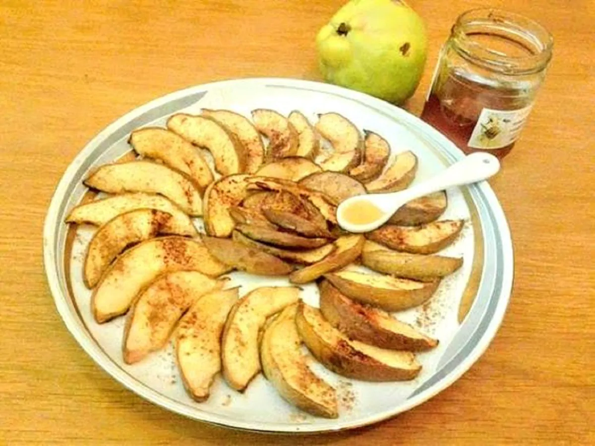 - In una tazzina miscelate una cucchiaiata abbondante di miele con il succo di mezzo limone e, con l’aiuto di un pennellino, spennellare le mele.