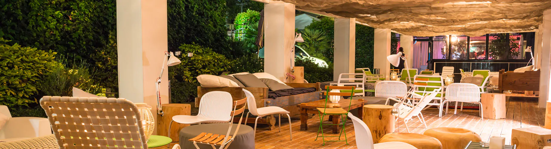 Descrizione Location. Location moderna ed elegante che si sviluppa su una superficie di 300 metri divisa in tre ambienti disposti su due livelli, un lounge bar con tavoli esterni e due sale ristorante.
