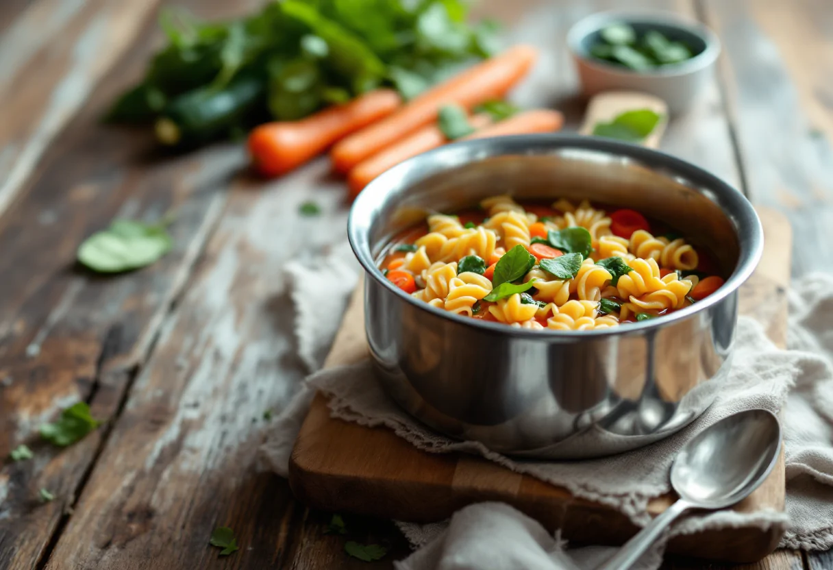 La minestra di pasta e verdure con gorgonzola è un piatto che celebra la semplicità e la bontà degli ingredienti freschi. Per prepararla, è fondamentale utilizzare prodotti di stagione, che non solo garantiscono un sapore migliore, ma anche un apporto nutrizionale elevato. Gli ingredienti principali includono cipolla, porro, carota, patate, fagioli, fagiolini, piselli e pomodorini secchi, tutti combinati con la pasta e il gorgonzola piccante per un risultato finale cremoso e saporito.