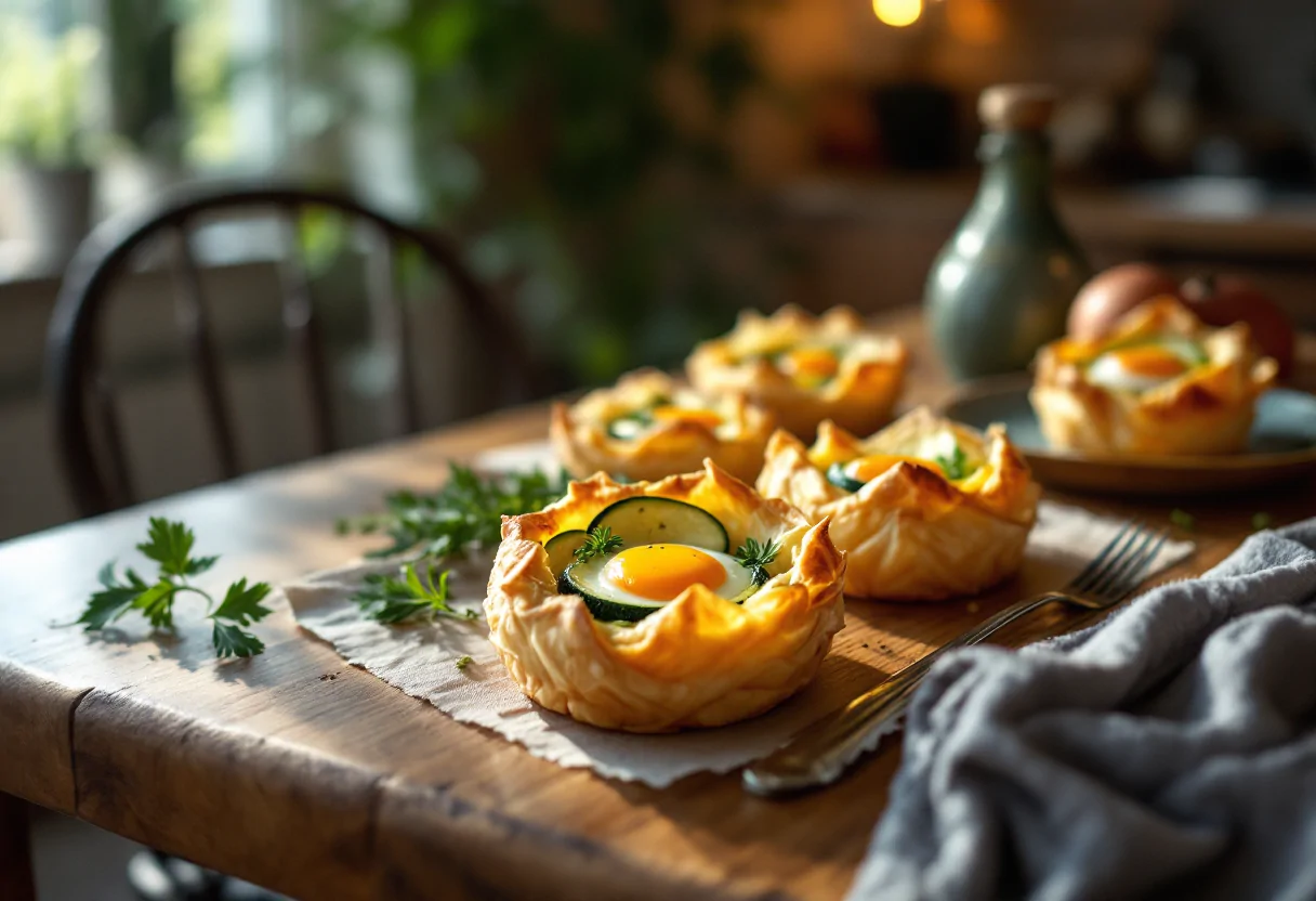Deliziosi nidi di pasta fillo con uova di quaglia, perfetti per la primavera.