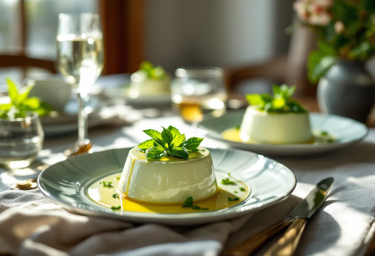 Per esaltare ulteriormente i sapori della panna cotta salata ai piselli, è consigliato abbinarla a un vino bianco semiaromatico. Il Sauvignon è una scelta ideale, grazie alla sua freschezza e ai profumi erbacei che si sposano perfettamente con la dolcezza vegetale del piatto. Un esempio di vino da considerare è il Giona 2019 di Tarlao Vignis, un vino che presenta note iodate e un sapore verticale, capace di bilanciare la cremosità della panna cotta.