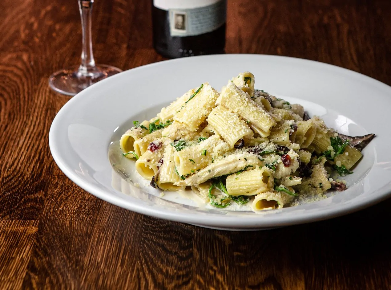 4. Cuocete i rigatoni al dente, scolateli e uniteli al condimento di cicoria e acciughe. Insaporite il tutto con del parmigiano grattugiato e servite.