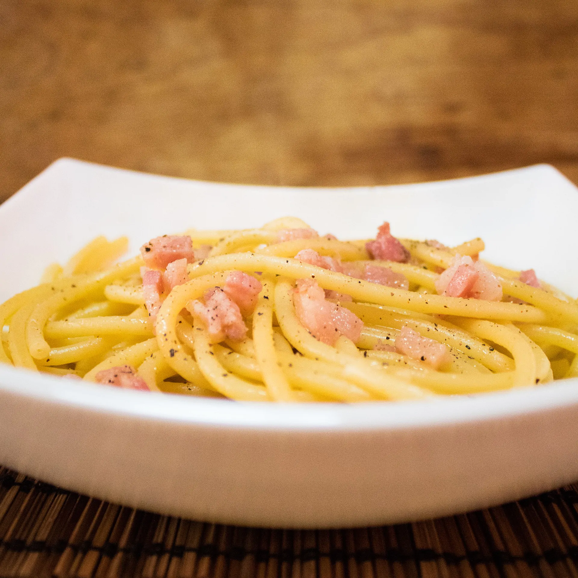 3. Cuocete al dente gli spaghetti e mentre lo fate soffriggete in padella la pancetta con poco olio, cosicché diventi leggermente croccante.