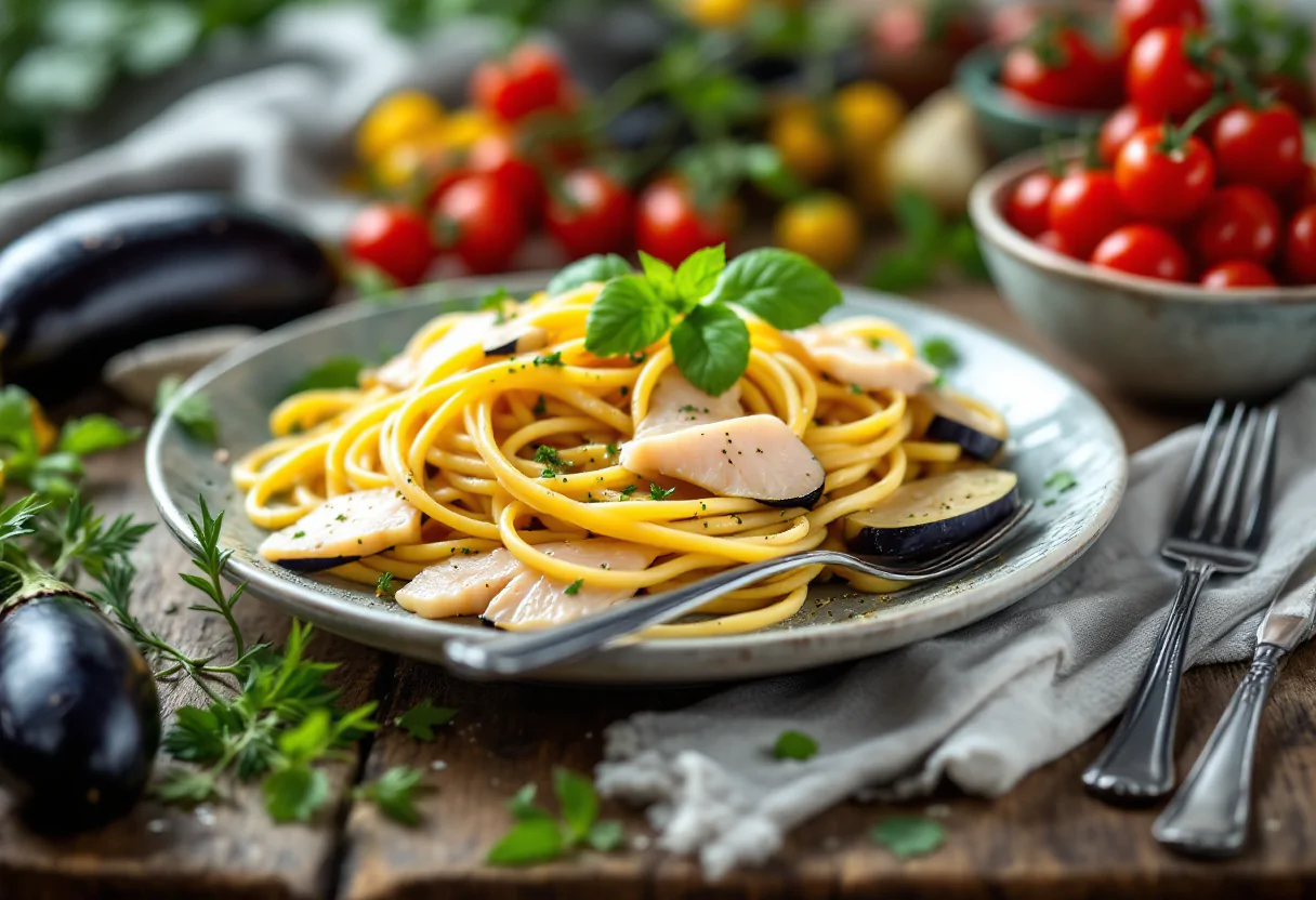 La pasta con melanzane e pesce spada è un piatto che racchiude in sé la semplicità e la bontà della cucina mediterranea. Per realizzarlo, è fondamentale scegliere ingredienti freschi e di alta qualità. La combinazione di melanzane, pesce spada e pomodorini crea un equilibrio di sapori che conquista al primo assaggio. La ricetta tradizionale prevede l’uso di pasta corta, come penne rigate o mezze maniche, ma non è raro utilizzare anche spaghetti o linguine per una variante più classica.