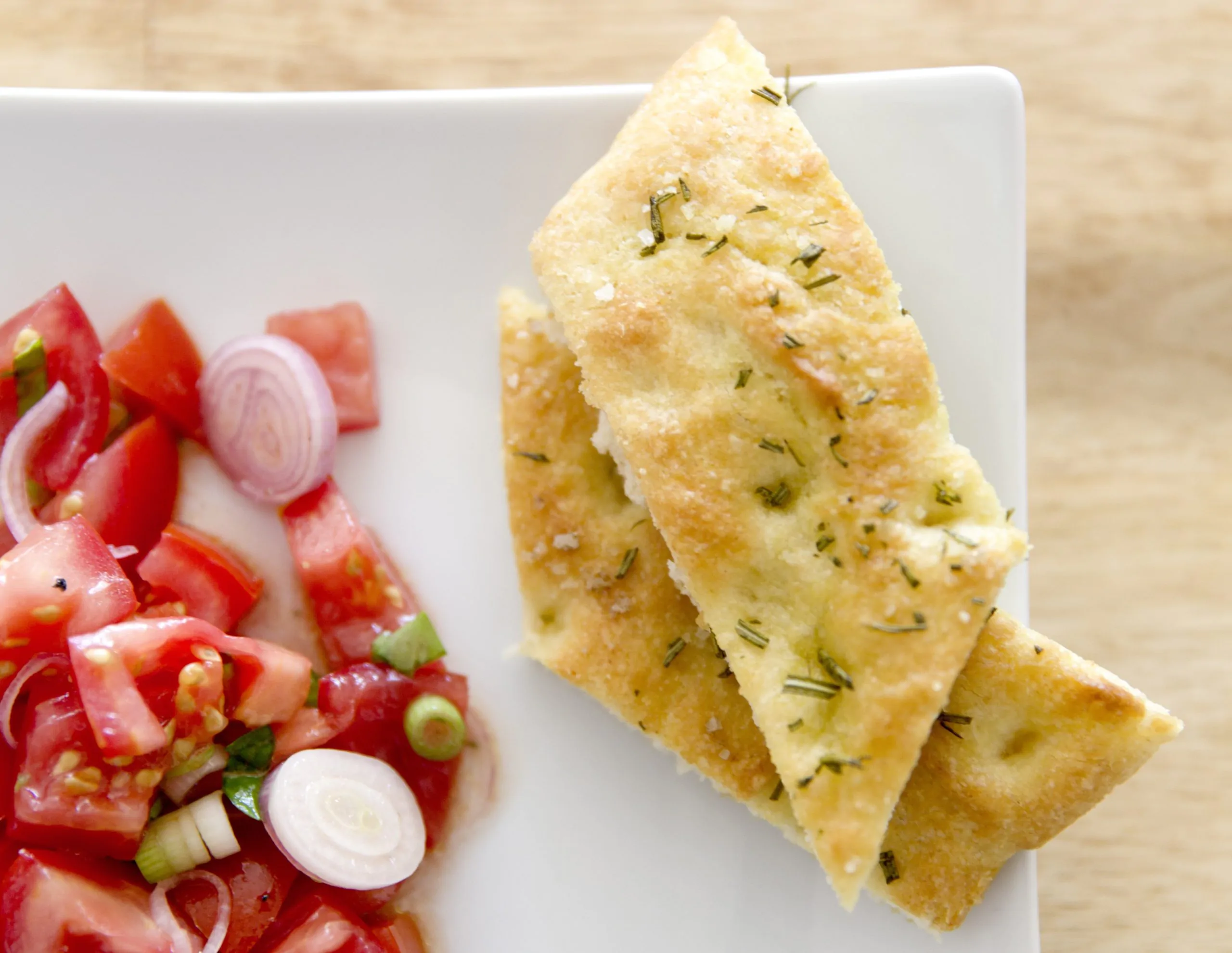 - Lasciate lievitare l’impasto per altre 4 ore, dopodiché spennellate la superficie con olio extravergine d’oliva e distribuite delle erbe aromatiche, come rosmarino e timo.
