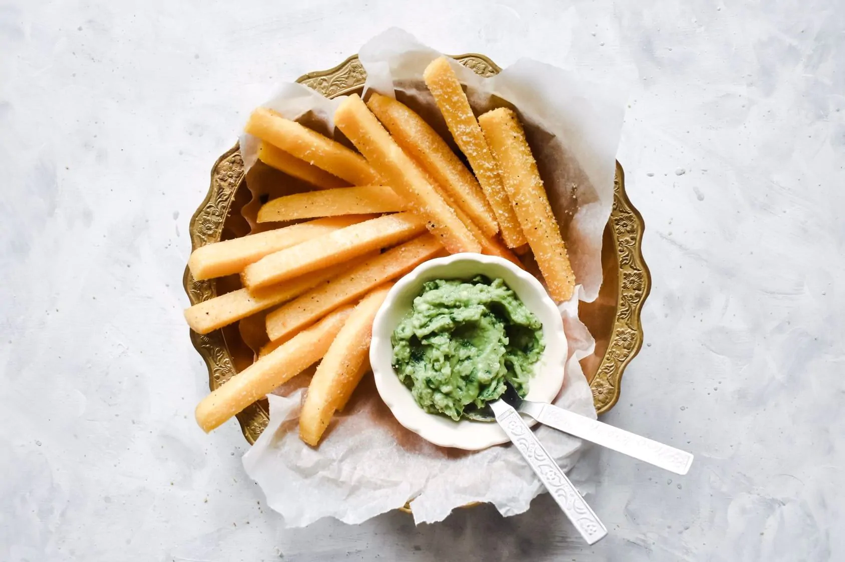 La polenta bianca fritta è perfetta sia come antipasto, tagliata a fettine e condita con ingredienti leggeri, come delle verdure grigliate o saltate in padella, sia servita come un vero e proprio finger food, da gustare durante un aperitivo con delle salse fatte in casa, come la guacamole, la salsa tonnata e l’hummus di ceci.
