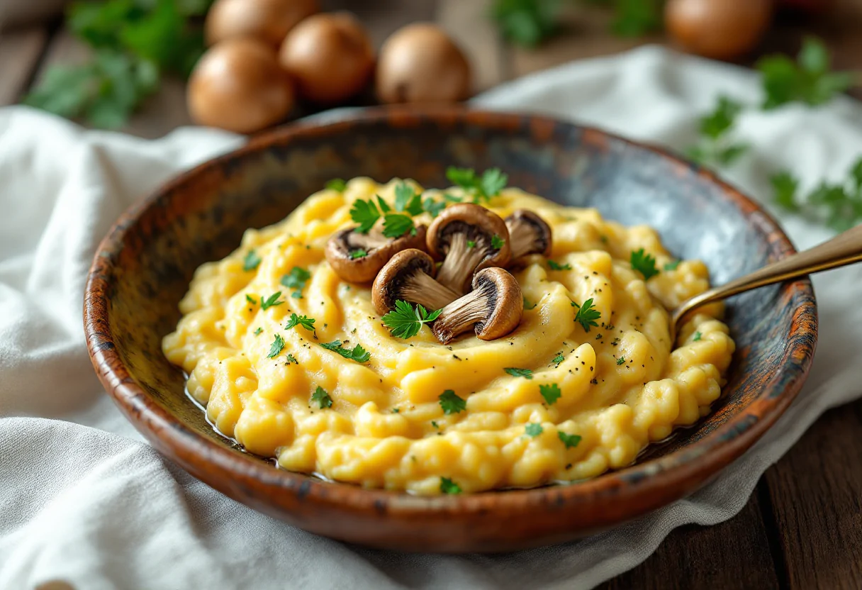 Scopri la ricetta della polenta cremosa con funghi porcini, un piatto tradizionale italiano.