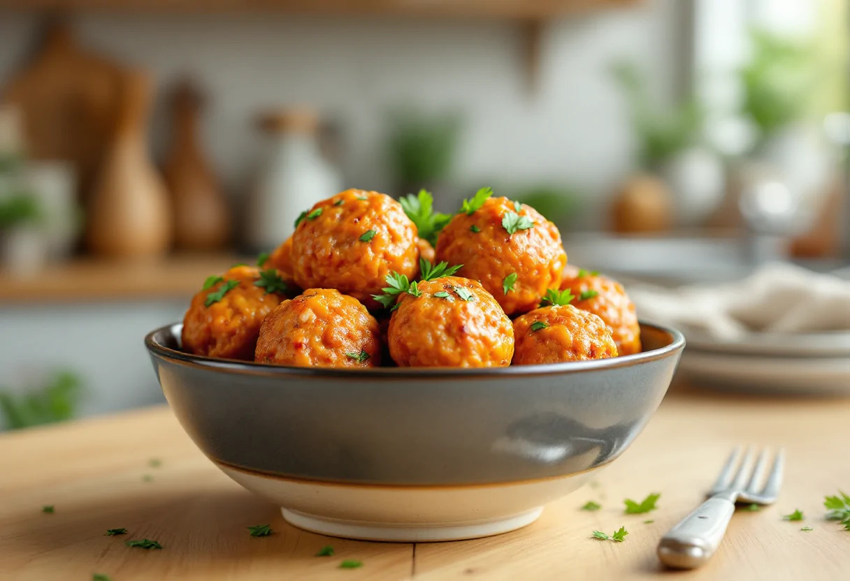 Le polpette possono essere fritte in abbondante olio di arachidi o cotte in padella con un velo di olio extravergine d’oliva, creando una crosticina dorata e croccante. Per un tocco di freschezza, servitele con una salsa a base di yogurt greco, maionese e un pizzico di Tabasco.