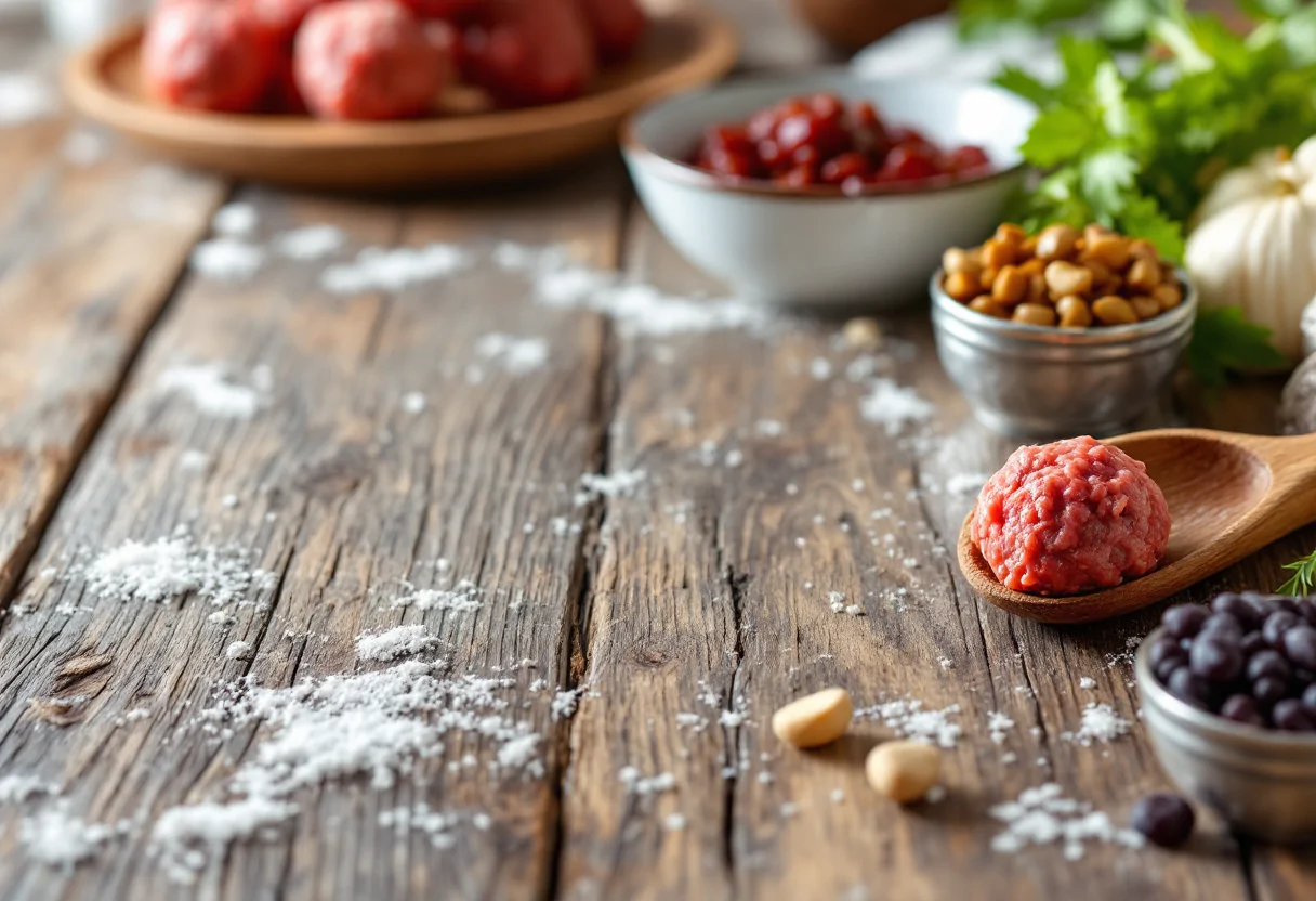 La ricetta prevede l’uso di carne di manzo macinata, tuorlo d’uovo, grana grattugiato, patate lesse e una selezione di spezie come il pepe rosa e la noce moscata. La frutta essiccata, come prugne e albicocche, viene utilizzata per creare un condimento agrodolce che esalta il sapore della carne.