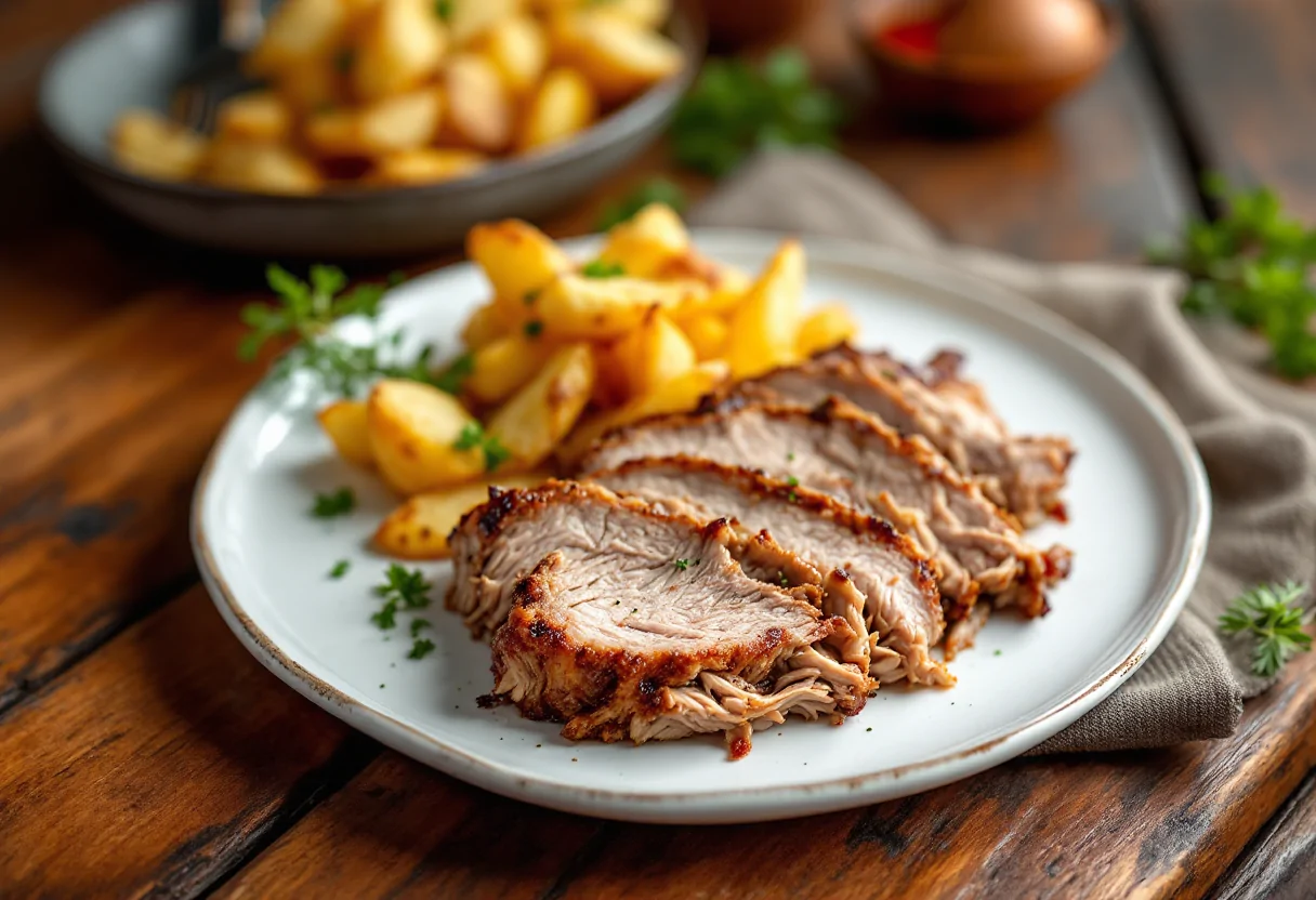 Presentate il pulled pork su un letto di millefoglie di patate, creando un piatto che non solo è delizioso, ma anche visivamente accattivante. Questo piatto è perfetto per una cena speciale o per sorprendere i vostri ospiti con una ricetta che unisce tradizione e innovazione.