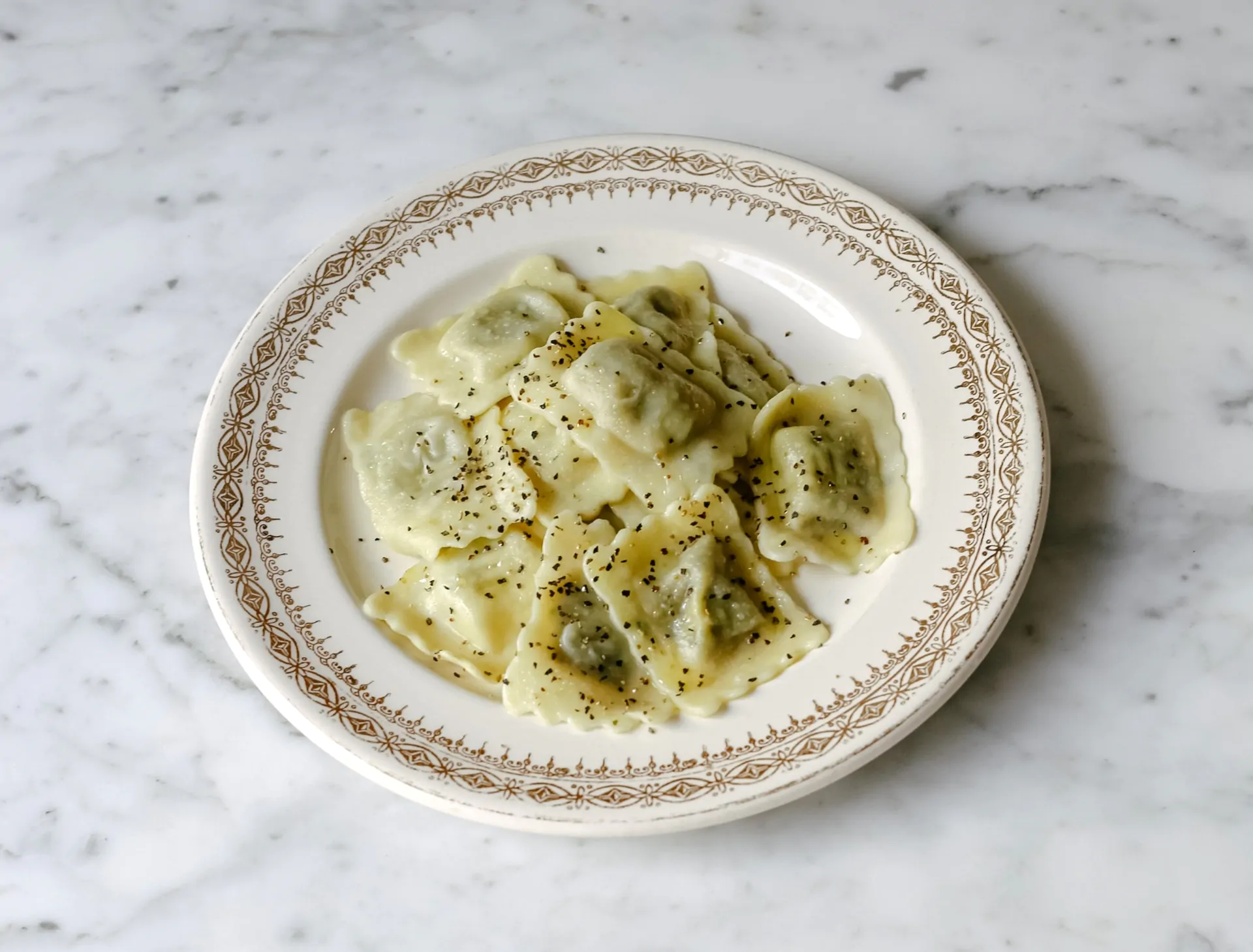 - Farcite i ravioli con una piccola noce di impasto e sigillate accuratamente i bordi per evitare che si aprano in cottura. Cuoceteli in abbondante acqua bollente salata, scolateli non appena riaffiorano a galla e conditeli con burro e parmigiano.