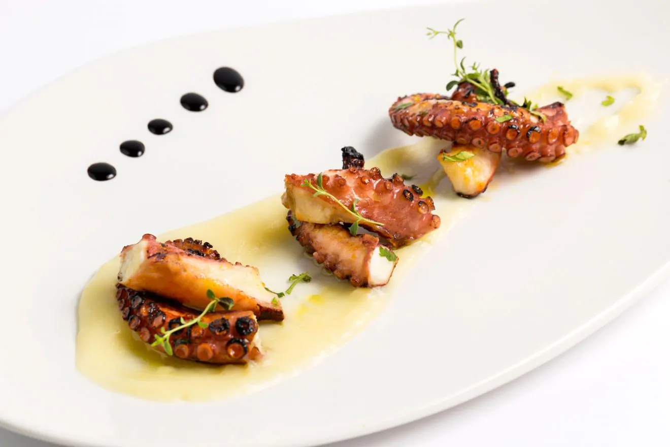Provate anche il polpo alla griglia con stracciatella di burrata e il polpo arrosto su fonduta di formaggio.