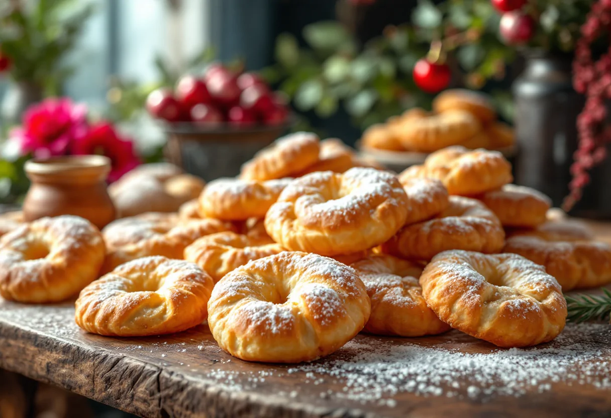 Per prepararle, inizia mescolando 500 g di farina con 100 g di zucchero, la scorza grattugiata di un limone e 80 ml di olio di semi. Aggiungi 160 ml di vino bianco e impasta fino a ottenere un composto liscio. Dopo aver lasciato riposare l’impasto, stendilo sottilmente e ritaglia le forme desiderate. Friggi in abbondante olio caldo fino a doratura e spolvera con zucchero a velo prima di servire.