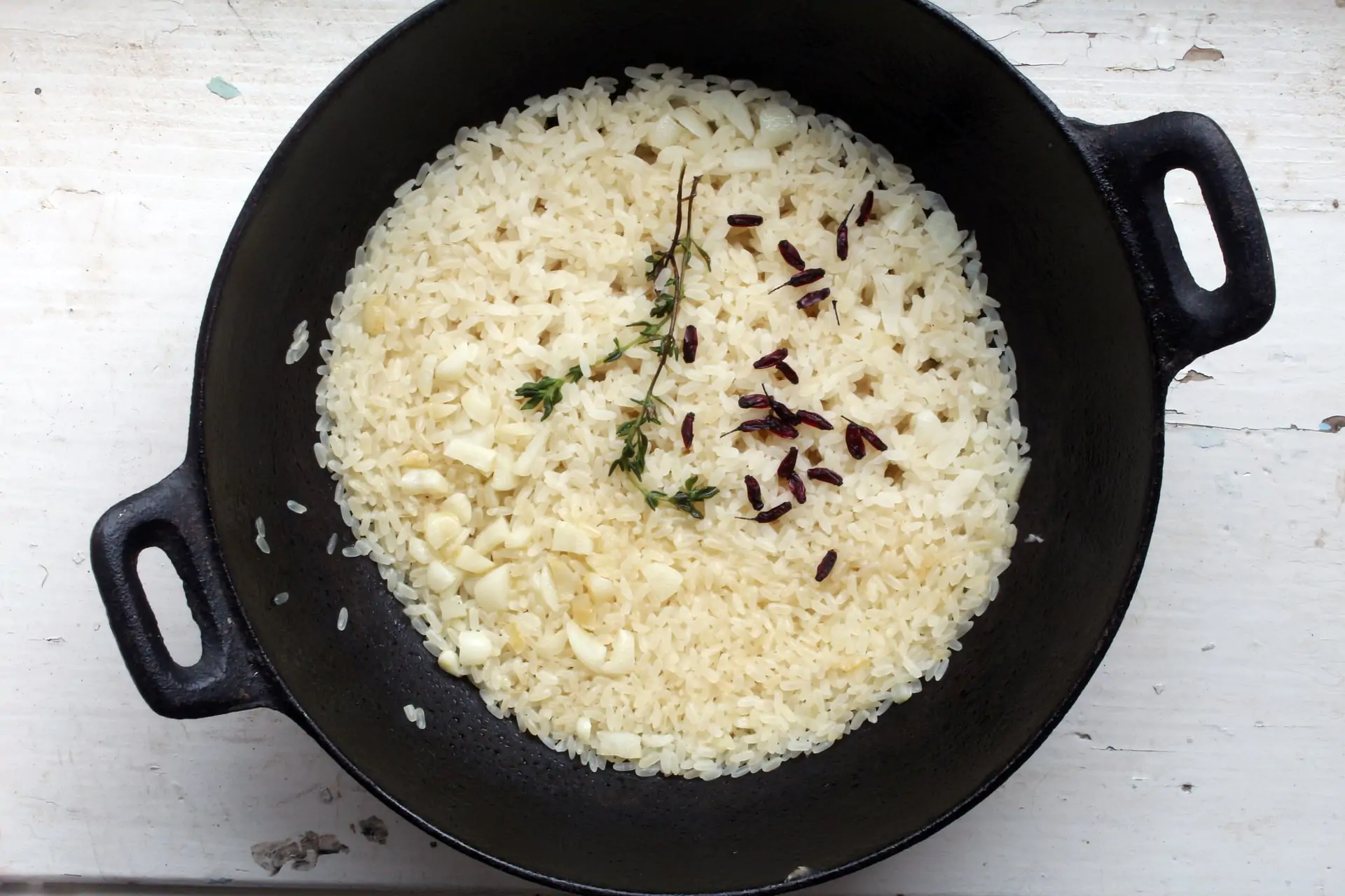 - Oleate il fondo della casseruola (vi consigliamo di sceglierne una antiaderente) con poco olio di semi, dopodiché versate il riso Jasmine e il latte di cocco.