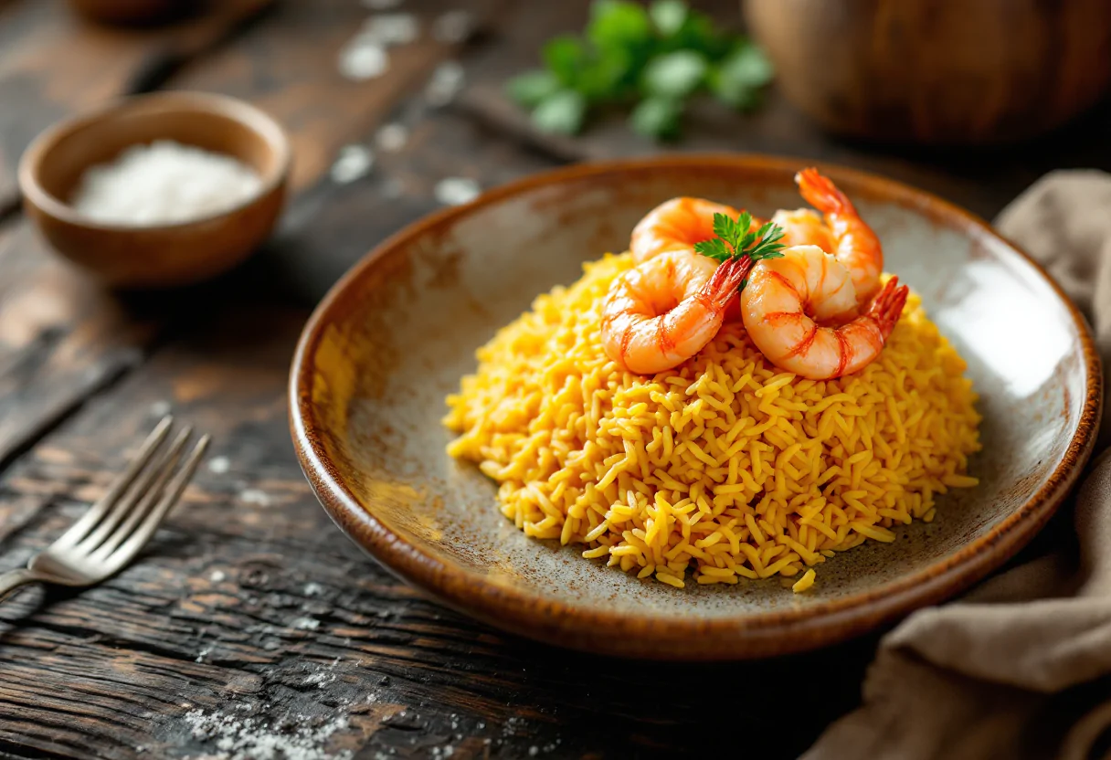Scopri il riso giallo con gamberoni, un piatto perfetto per ogni occasione.