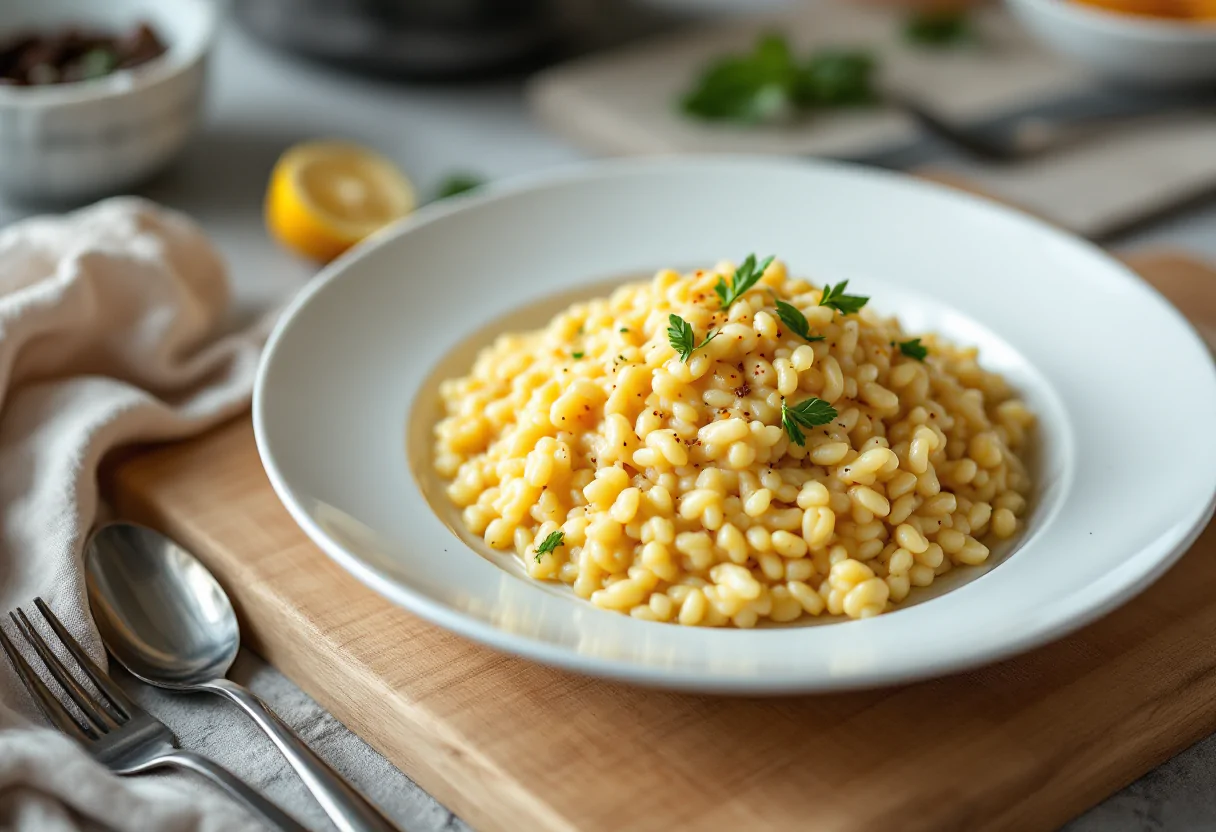 Scopri il sapore unico del risotto al Castelmagno e bergamotto, un piatto invernale raffinato.
