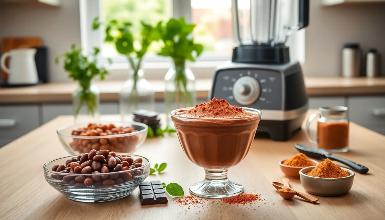 Frulla tutto con un mixer a immersione fino a ottenere una mousse cremosa e omogenea. A questo punto, aggiungi anche lo zucchero di canna e il cacao amaro. Il risultato è un composto ricco, intenso e con una consistenza che invita a essere assaporato lentamente.